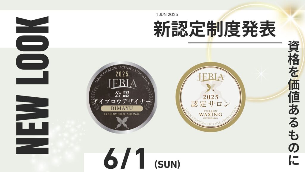 「認定サロン」・「公認アイブロウデザイナー」制度、6月1日始動! 2025年6月1日より、JEBLA(一般社団法人ジャパンアイブロウライセンス協会)は、新たな制度として「認定サロン」および「公認アイブロウデザイナー」の運用を開始いたしました。 この制度... -