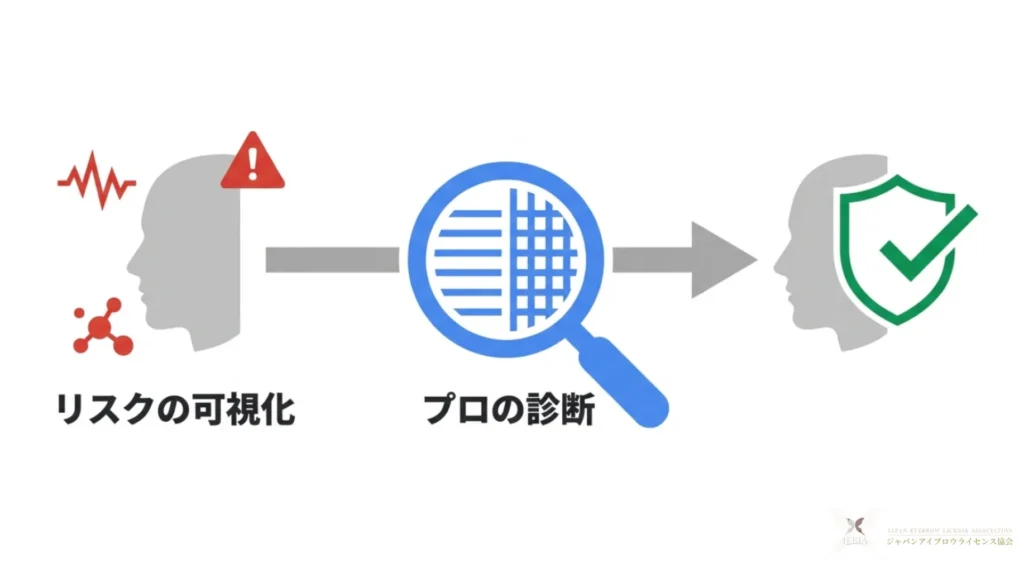 「最近、まぶたが下がってきた気がする」という悩みに対して、医学的な知識に基づいたデザイン提案や、生活習慣のアドバイスができるからです。