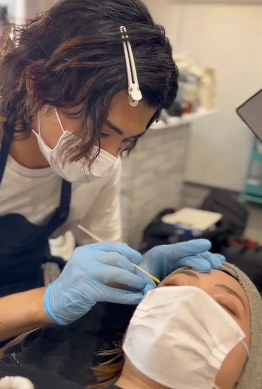 カウンセリングでデザインが決まれば、いよいよ施術に入ります。ここからアイブロウデザイナーは、極限の集中モードに突入します。眉毛の世界において「たった1本の毛、わずか0.5mmのライン」が、顔の印象を劇的に変えてしまうことを、プロは痛いほど知っているからです。