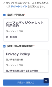 利用規約に同意し、メールアドレスとパスワードを設定します。