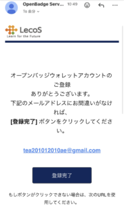 メールから「オープンバッジ発行のお知らせ」を開いて「オープンバッジ確認」を押します。