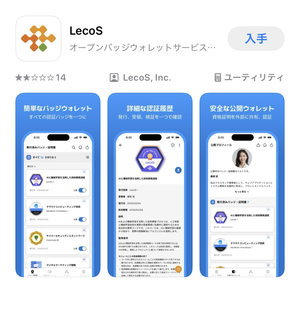 取得したバッジは専用の「オープンバッジウォレット」で一元管理できます。